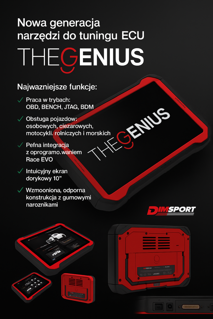 Z przyjemnością informujemy, że w naszej ofercie dostępny jest już Dimsport THE GENIUS – nowoczesny, wszechstronny handheld do odczytu i zapisu sterowników ECU/TCU, działający zarówno w pojeździe (OBD), jak i na stole (BENCH / BDM / JTAG).